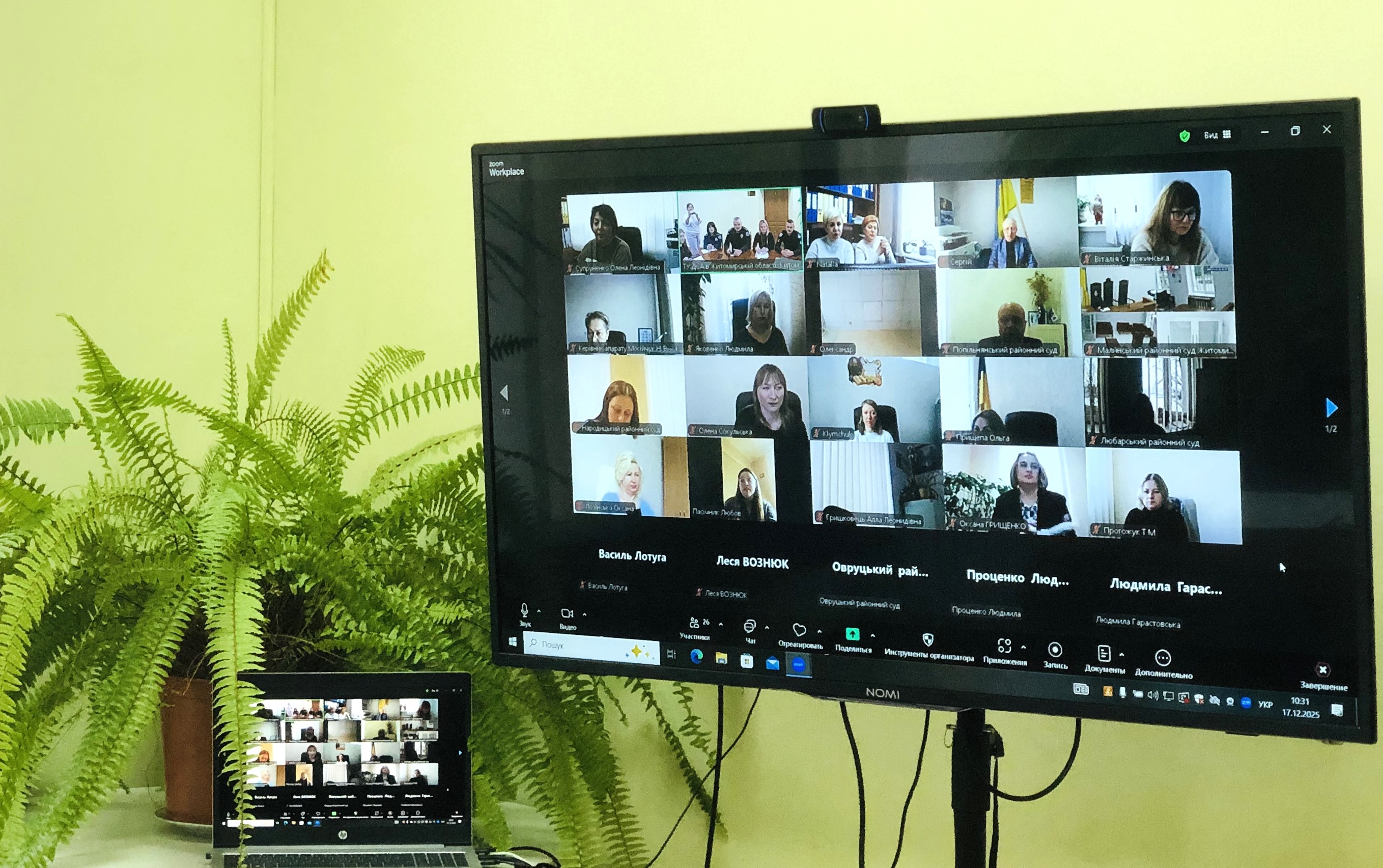 17 грудня 2025 у приміщенні Територіального управління Державної судової адміністрації України в Житомирській області відбулася спільна робоча нарада в режимі відеоконференції за участі Т.в.о. начальника Територіального управління Тетяни Барабащук, командира роти конвойної служби ГУНП в Житомирській області Олександра Кучерявого, заступника начальника Територіального управління Служби судової охорони у Житомирській області Миколи Юхимчука, начальника відділу організації охорони та підтримання громадського порядку ТУ ССО у Житомирській області Людмили Передер, голів та керівників апаратів місцевих загальних судів Житомирської області.