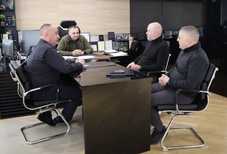 08 квітня 2026 відбулася робоча зустріч керівників структур Житомирської області, які відповідальні за безпеку та належне функціонування судової системи регіону за участі начальника ГУНП в Житомирській області Олександра КОВТУНА, начальника Територіального управління ССО у Житомирській області Геннадія ГЕРАСИМЧУКА, начальника Територіального управління Державної судової адміністрації України в Житомирській області Євгена ТАТУЙКА.